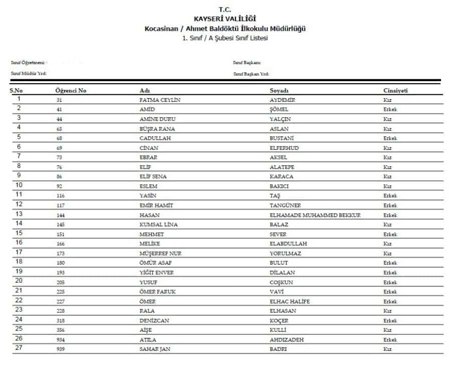 Okulumuza ataması yapılan 1/A Sınıf Öğretmeni henüz göreve başlamadığı için ismi paylaşılmamıştır. Önümüzdeki hafta yeni atanan öğretmenlerimiz görev başlayacaktır.